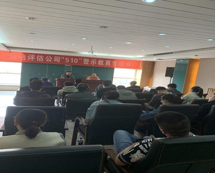 2019年5月9日下午3时, 江苏瑞地土地房地产评估有限公司“510”警示教育专题活动在盐城举行。活动邀请市征收办陈伟科长作了题为“切实增强廉政自律意识,客观公正开展评估工作”的专题辅导,公司全体人员认真听取了陈科长的讲解。接着选择学习了近年来全国房屋征收拆迁领域有关违法违纪案例,让我们“不忘初心、牢记使命”。会议还进行了交流发言,在一线的评估人员从自身的实际交流反腐倡廉的心得体会。